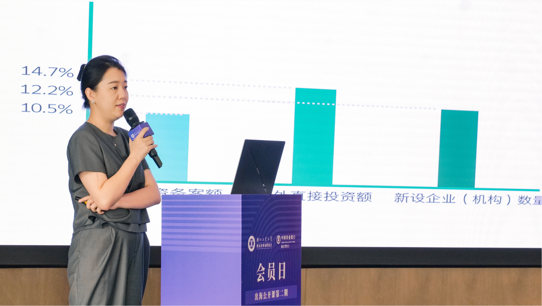 中国农业银行杭州分行国际金融部资深国际业务专家路文婕作题为《企业出海外汇政策及银行投融资服务简介》的主题分享。她全面解读了企业出海的外汇政策与银行投融资服务,聚焦现阶段企业出海的投资特点与趋势,深入解析了国家外汇便利化政策与浙江省区域支持举措。最后结合农行全链条金融服务的专业力量和一线经验,为大家介绍了在企业出海金融领域所要注意的实操要点和农行所能提供的体系化金融服务。