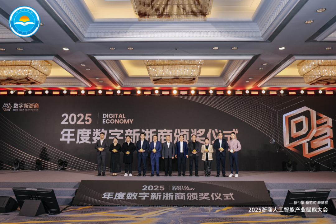 大会现场亮点纷呈,其中备受瞩目的环节之一,便是2025年度“数字新浙商”颁奖仪式。“数字新浙商”是数字经济领域的浙商和创业者,由浙江省数字经济学会于2019年7月首倡,于2021年启动首届评选。本届是数字新浙商的第五届评选,通过公开征集、专家评审等方式开展,以“企业形象、行业影响力、业务创新力”为主要评审标准,以企业家在上一年度的经营行为、成绩为主要评审内容,最终遴选出“年度数字新浙商”。