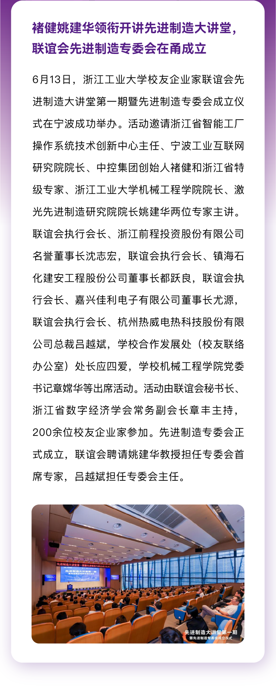 褚健姚建华领衔开讲先进制造大讲堂,联谊会先进制造专委会在甬成立