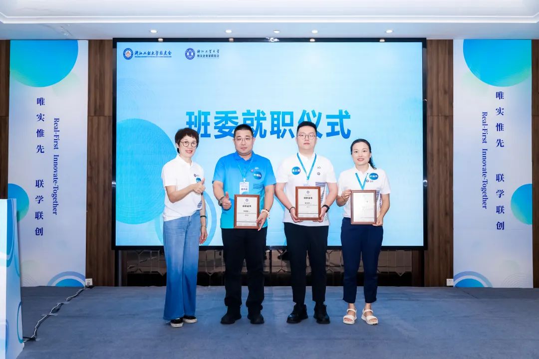 活动举行了班委就职和营员授牌仪式。中达联合控股集团股份有限公司董事长金王涛任班长,浙江上鑫控股集团有限公司董事长、总经理朱德松任副班长,嘉兴市斯味甜化学科技有限公司总经理严洁兰任班委。班长金王涛表示青创营要践行联谊会“联学联创”理念,在学习过程中保持务实与真诚,同时在重温校友情谊的基础上,推动联合创业,共同创造属于浙工大校友的未来。