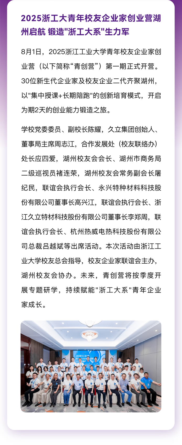 浙江工业大学校友企业家联谊会工作月报·2025年8月